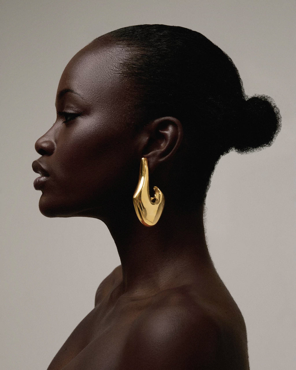 The BETTY hoops feature an exclusive, original design, handcrafted in Brazil using high-quality special metals with an 18k Gold or White Gold plating, ensuring intense shine and durability. Our technique, directly from Italy, allows the pieces to be hollow inside, making them surprisingly lightweight. For maximum comfort, we use special gold-plated silicone backings that evenly distribute the weight and provide better support – perfect even for stretched earlobes. Additionally, we follow a nickel-free process, avoiding allergies.