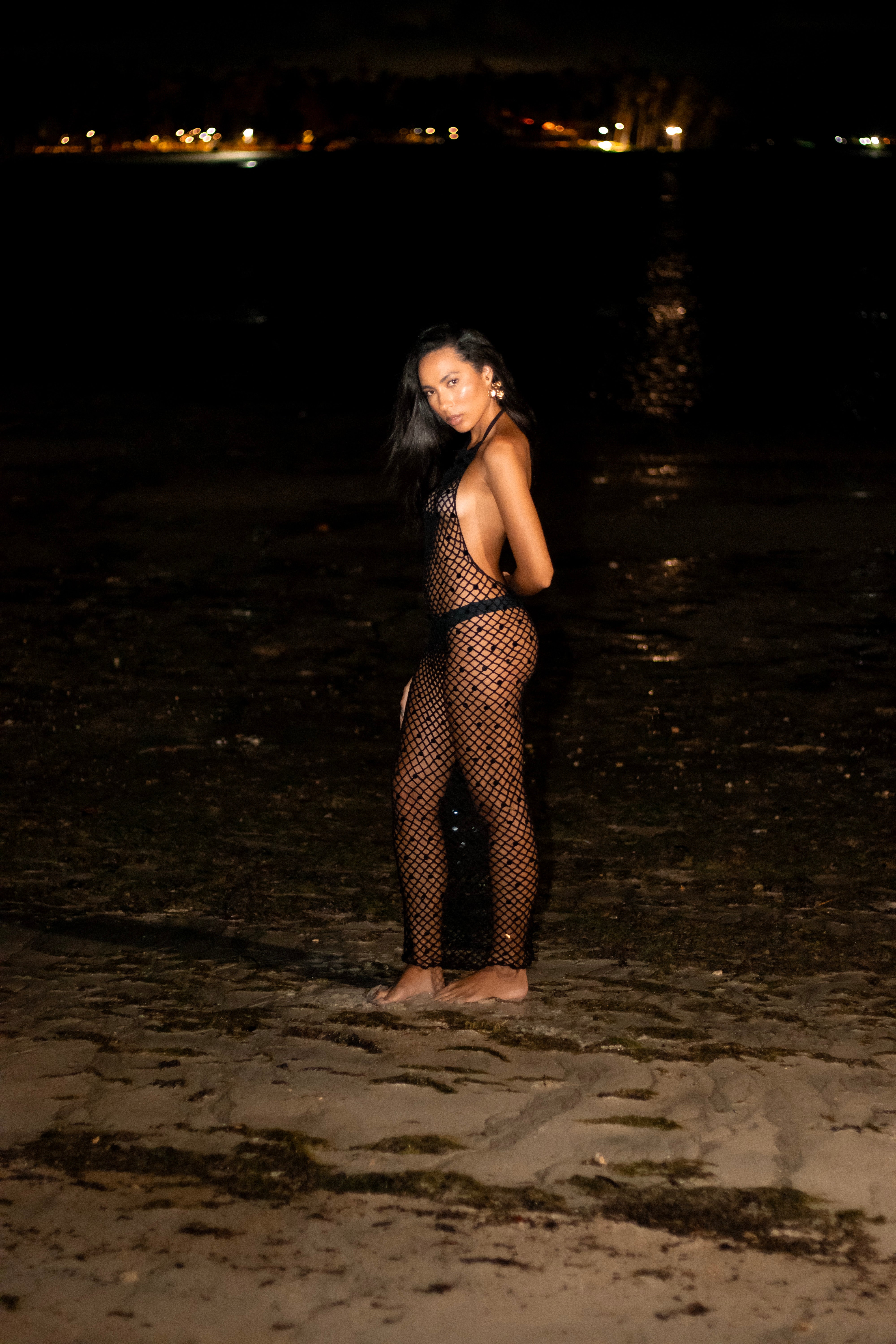 Plongez dans l'ombre avec notre robe Sombra, une création envoûtante qui respire le mystère et le charme. Cette pièce captivante est confectionnée avec soin au Brésil, chaque détail étant minutieusement exécuté à la main. Confectionnée en fil noir brésilien 100 % fin, elle arbore une texture luxueuse et une silhouette élégante. Sa broderie complexe, entièrement réalisée à la main, ajoute profondeur et sophistication au modèle. Ornée de paillettes noires scintillant comme des étoiles dans le ciel nocturne, la robe Sombra est une véritable œuvre d'art.