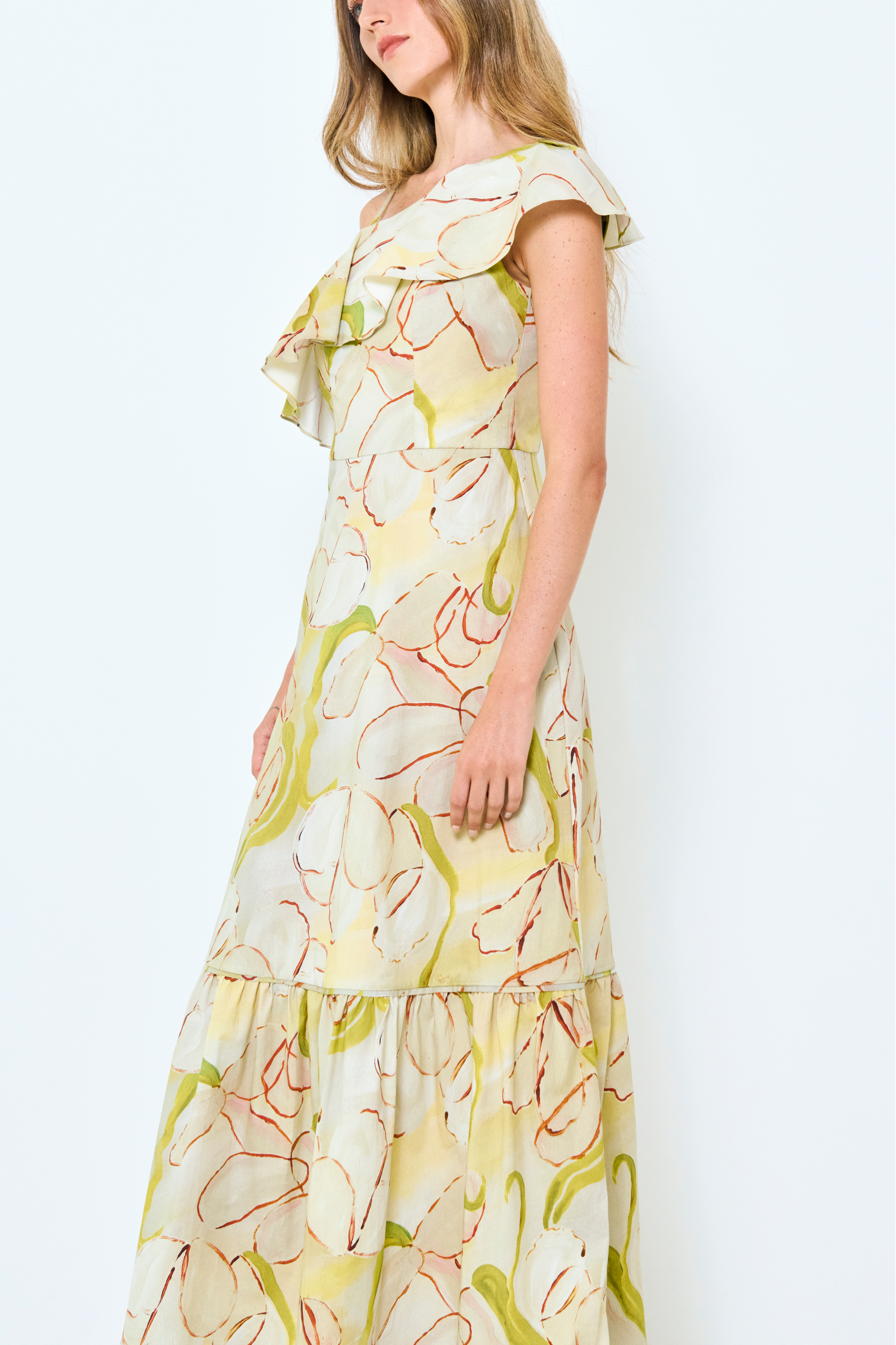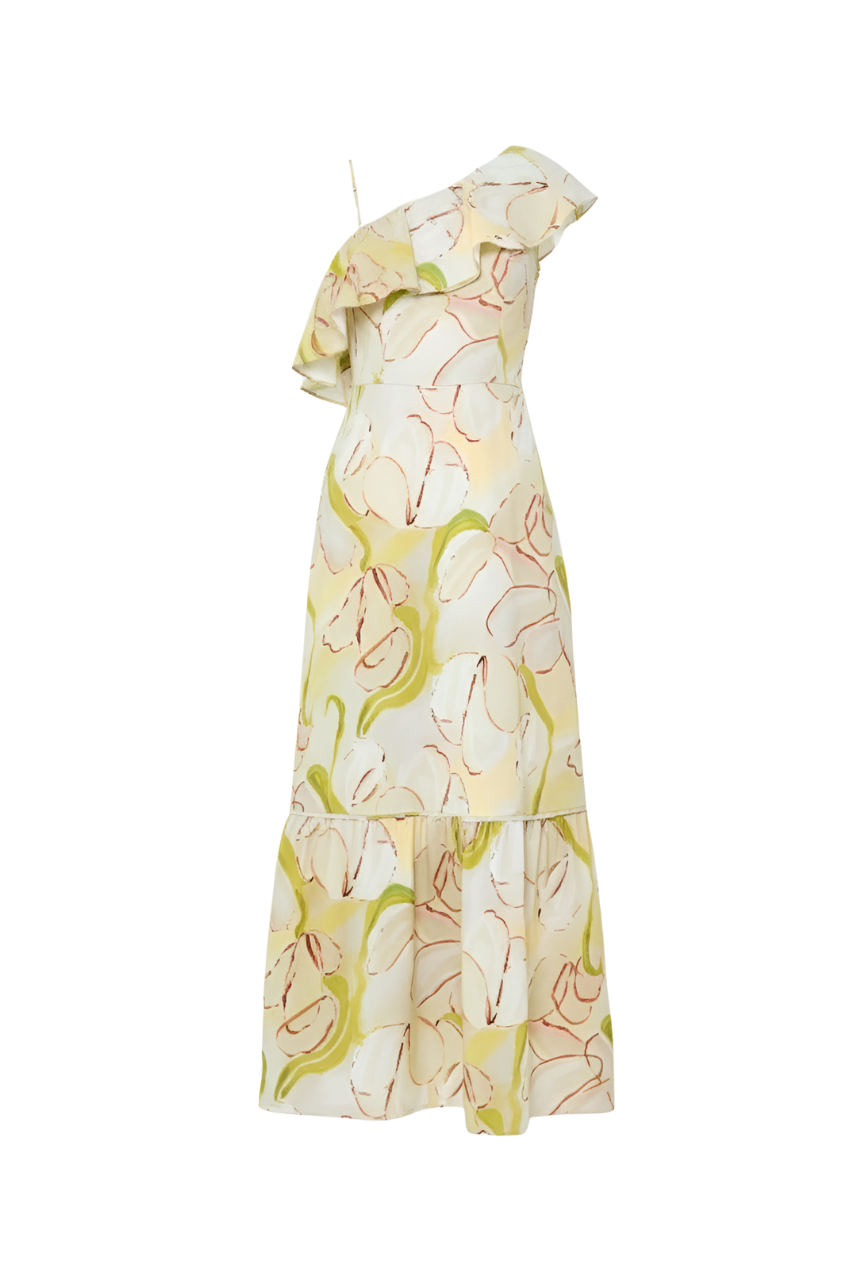 Celebrate bold femininity in the Meaningful Dress, designed in a vibrant Acid Flower print that evokes the essence of modern romanticism. This asymmetrical ruffled silhouette features a structured bodice and tiered skirt, combining effortless elegance with playful movement. Crafted from a breathable cotton blend with a hint of stretch for all-day comfort.