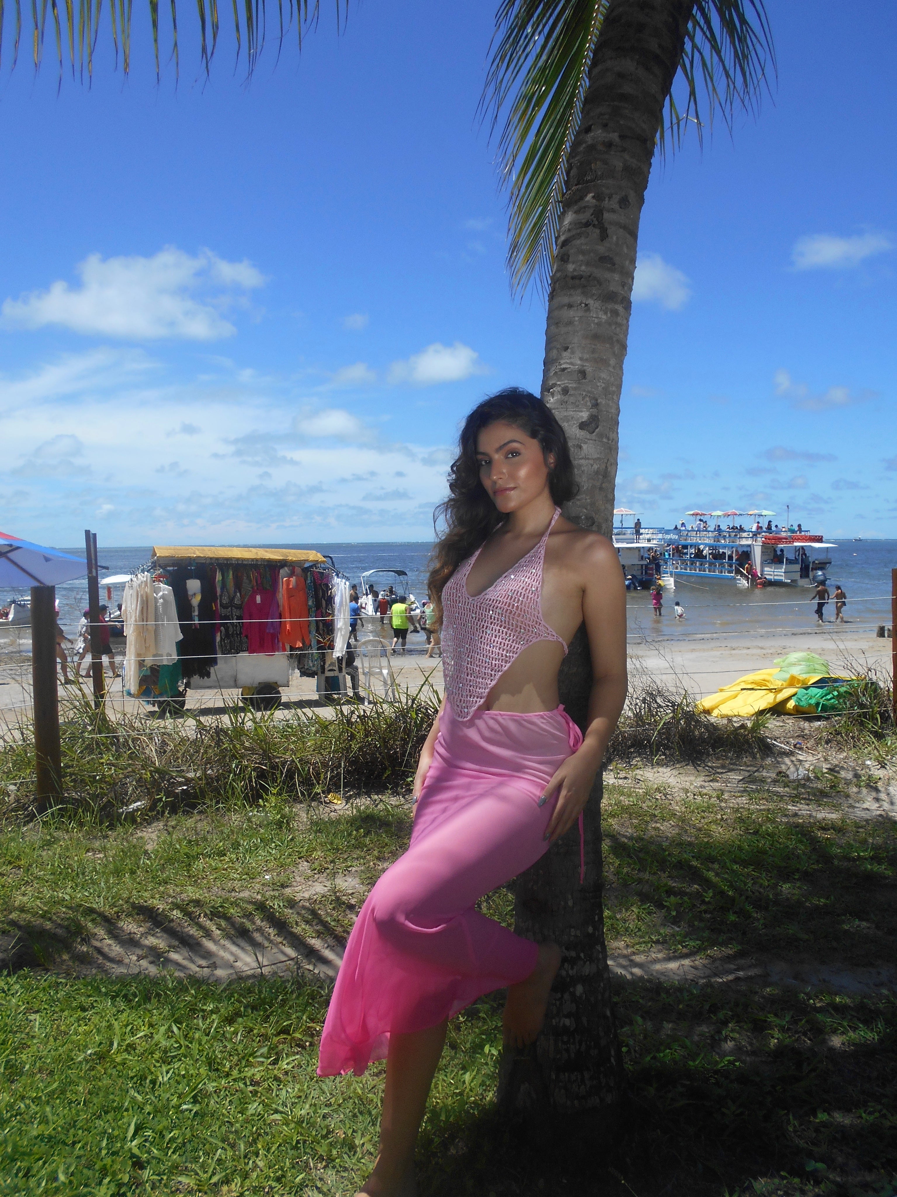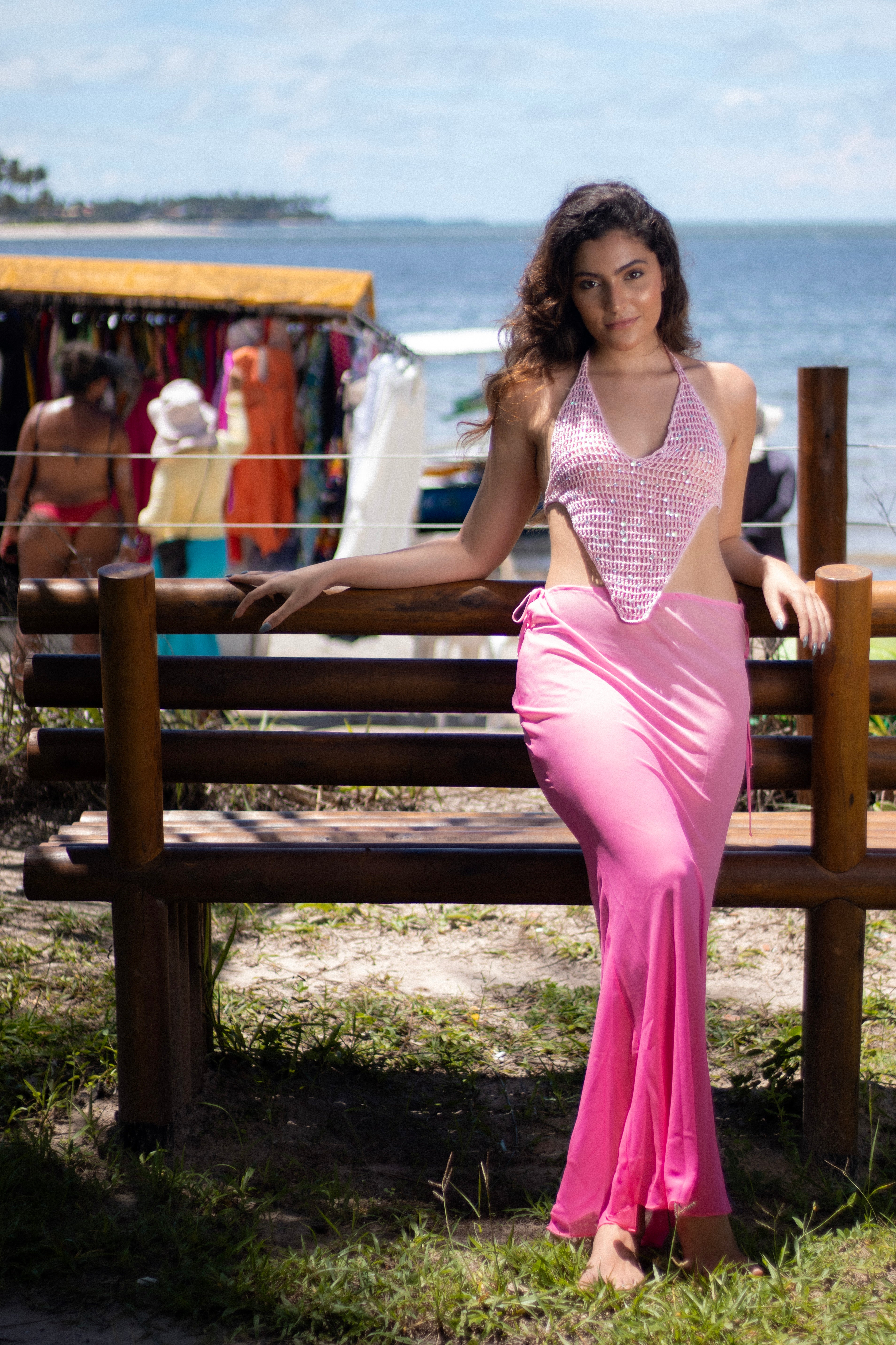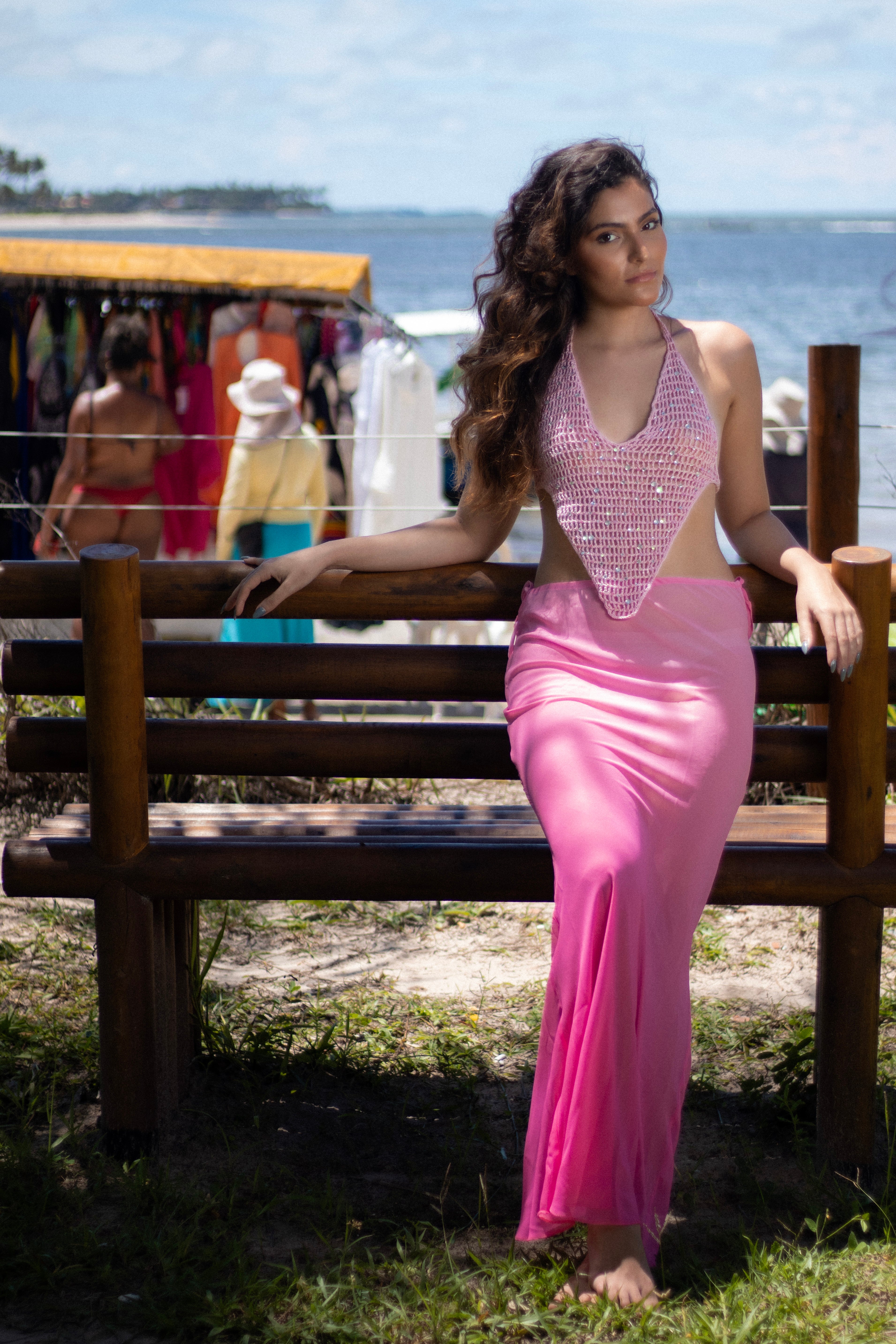 Plongez dans l'enchantement avec notre haut court Rosa, une création envoûtante inspirée des profondeurs océaniques. Fabriquée à la main au Brésil, cette pièce captivante arbore un délicat mélange de fils rose clair et de paillettes latentes, évoquant le scintillement des rayons du soleil à la surface de l'eau.
