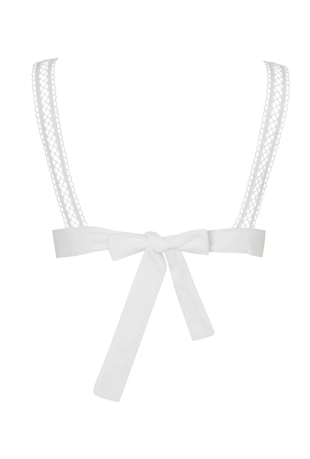 Embrace texture with our exquisite handmade bralette top with embroidered flowers and lace straps. Tie back closure. Style it with the Camila Skirt or any signature Waimari skirt. Accessorize it with strappy sandals and a straw bag and hat.
